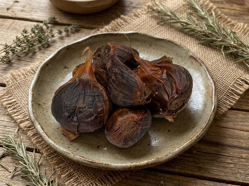 青森県産の「ホワイト六片(ろっぺん)」にんにくをじっくり熟成させることで、ツンとした刺激や強い香りがやわらぎ、まろやかな甘みと食べやすさが生まれる――